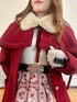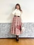クリスマスに着たいローズコーデ♡ 幻想的なローズステンドグラスのプリントに、チュール使いがエレガントなスカート。合わせるニットは着回し力抜群のバラボトル。インナーも手元のプチローズが愛らしいレースにしてフェミニンに。 着丈がスカートとピッタリな赤いケープコートを羽織れば、華やかなホリデーコーデに。