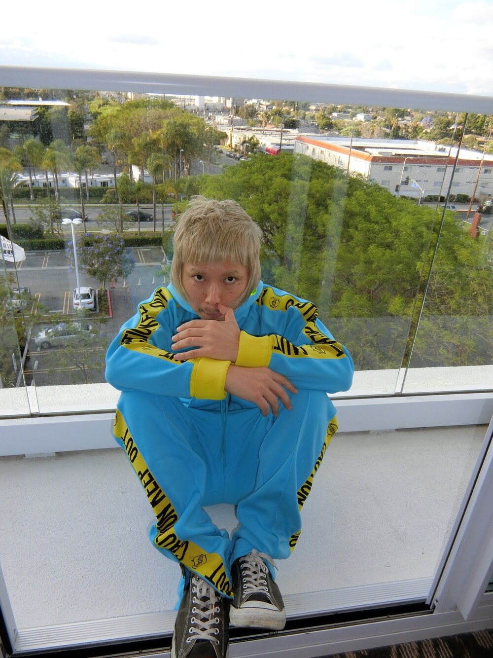 ブラック系のスニーカーを着用したメンズの春コーディネートの1枚目の写真