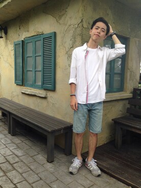 (スニーカー、グレー系)」を使った、老顏さん(メンズ・167cm)の夏コーディネート