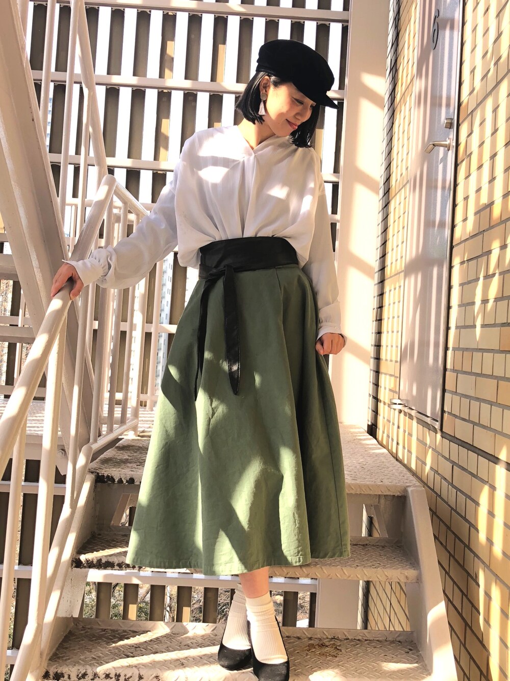 ゆっくりしたシルエットのブラウスはボリュームフレアスカートとあわせてサッシュベルトでメリハリをつけて着たい気分♪