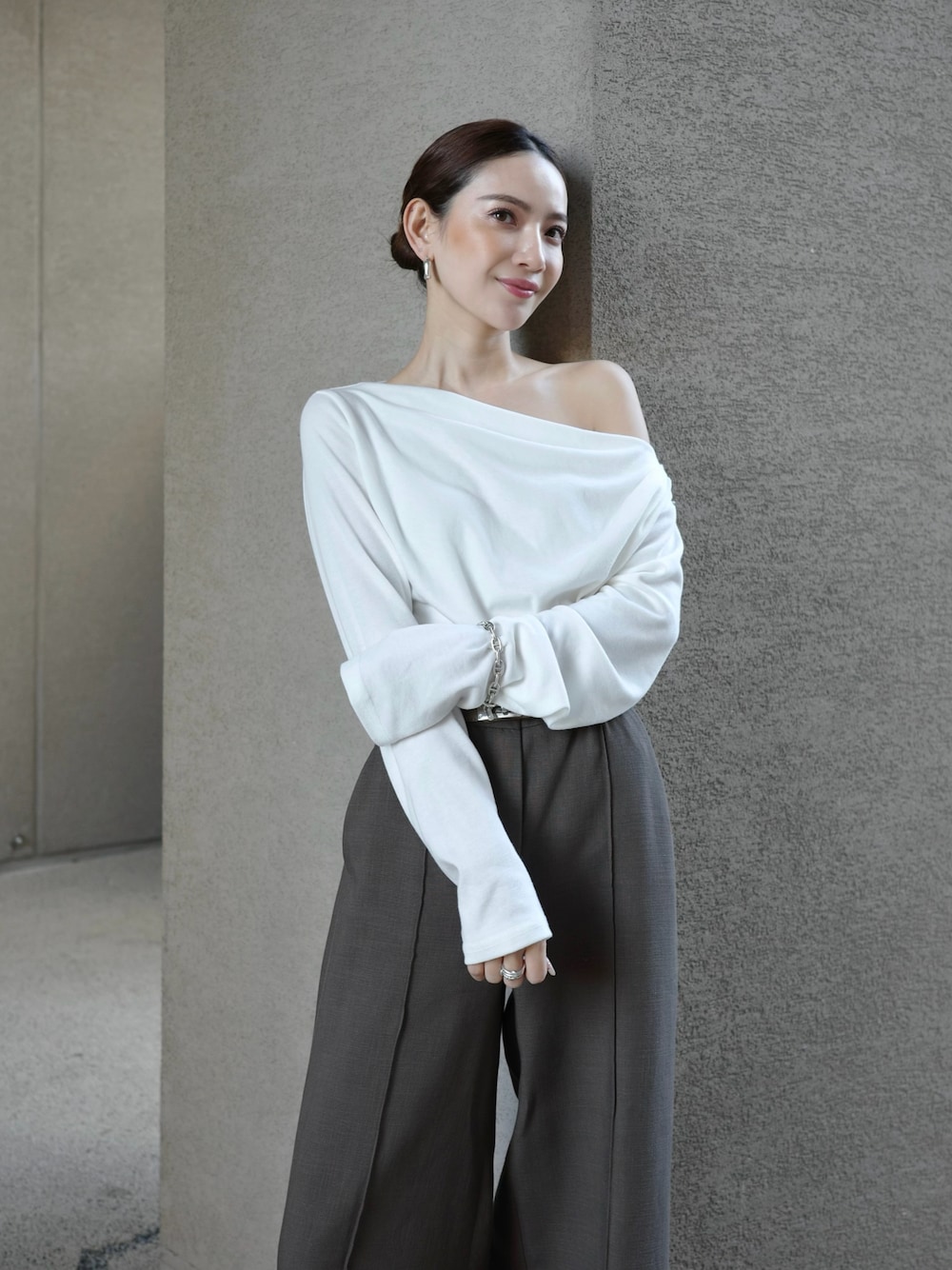 Aya ☽ 153cmのTシャツ/カットソー「【Rashik】ボートネックトップス」を使ったコーディネート