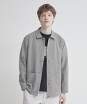 【セットアップ】カバーオールシャツ 春夏感のあるサッカー素材。ボックスシルエットでこなれ感のある着こなし。軽く、厚すぎない生地感でシャツ感覚で羽織っていただけます。