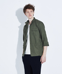 【コットンリネンスタンドシャツ】 スタンドカラーがスッキリとした大人の印象のシャツです。 麻とコットンを使用した柔らかい、ナチュラルな生地感が特徴になっています。
