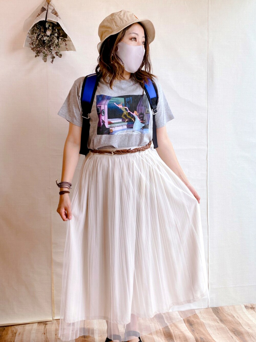 キャラTを使ったコーデpart2 チュールのスカートで甘めのようでバケットハットで甘さ控えめにしてみましま^_^ キャップ合わせてもかわいい♡ マリメッコのバックパックがマジで使える!! 今のところ全品販売中!! ミラクルボックス りんごのほっぺ ↑プロフから販売ページにワープできます!!全て一点ものなのでお早めに〜