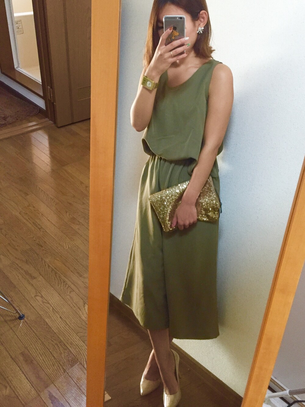結最近の結婚式はもっぱらパンツ派です! でもオールインワンだと後ろのチャック閉めるの大変だからセットアップがベストです笑。 このカーキはセットアップ❤️ ちょっとカーキはカジュアルかなとも思ったけど意外といけるな。 今度着ていく洋服を事前に合わせてみました❤️ 胸元にネックレスあったほうがいいな。