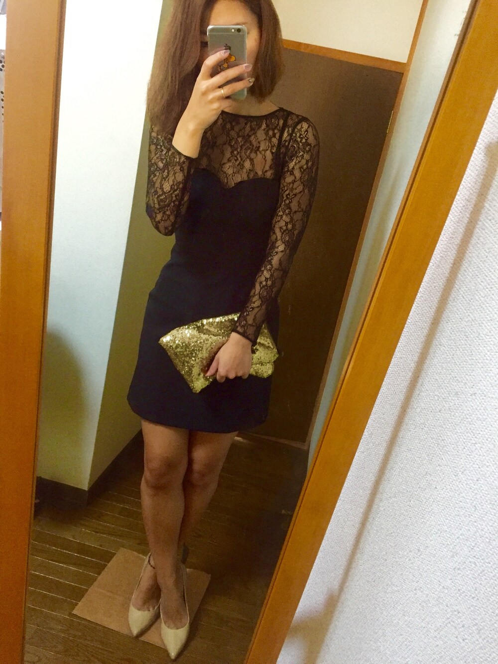 結婚式スタイル 手が太いので黒のレースで隠せるところが気に入っています。 今年は結婚式ラッシュ! ストッキングもヒールも結婚式でしか履かないから辛い…