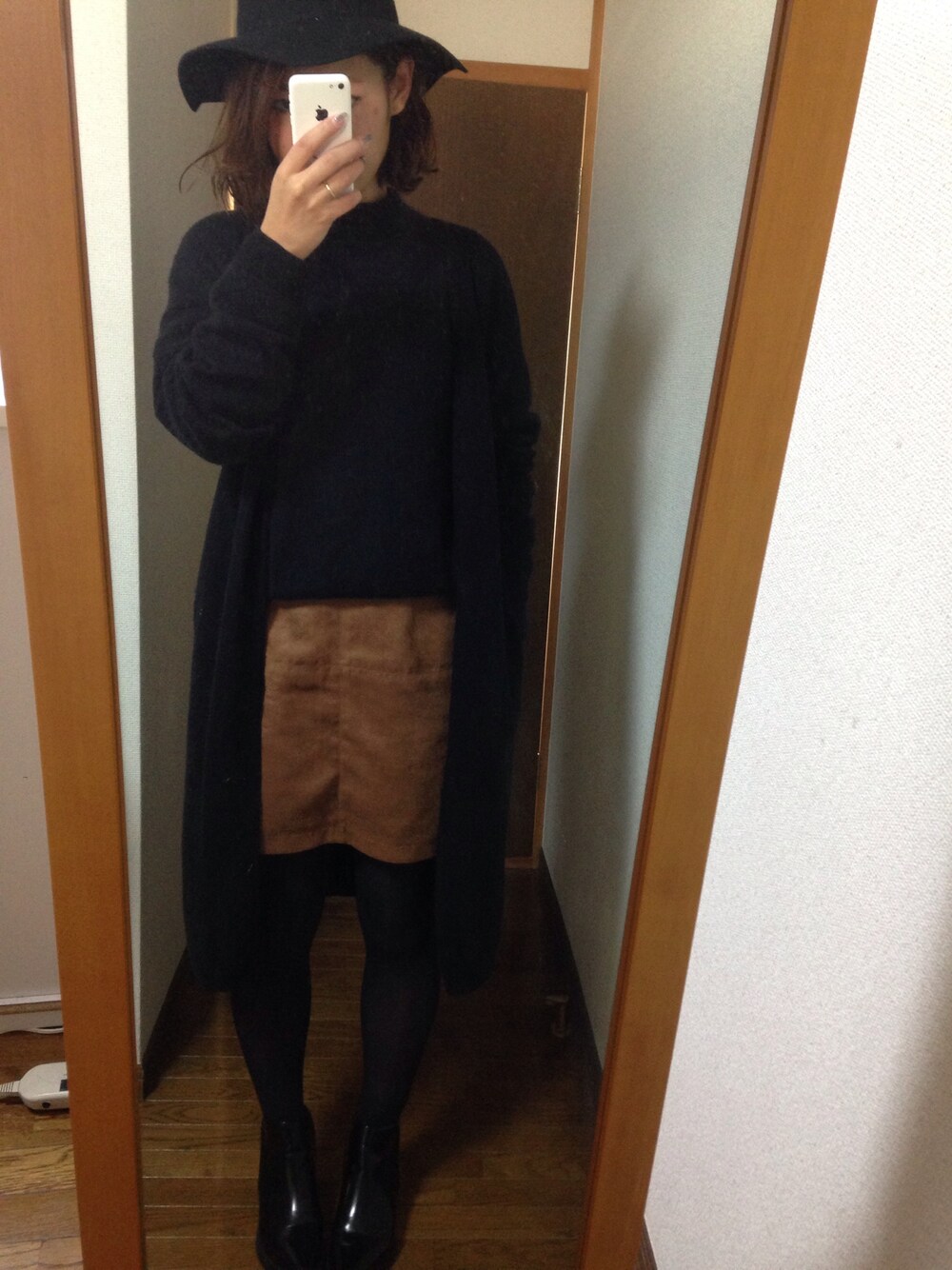 GUの帽子三色目。 今日はこの前買ったスカートと帽子を被りたくてあとは真っ黒。 最近茶色とカーキが好き❤️