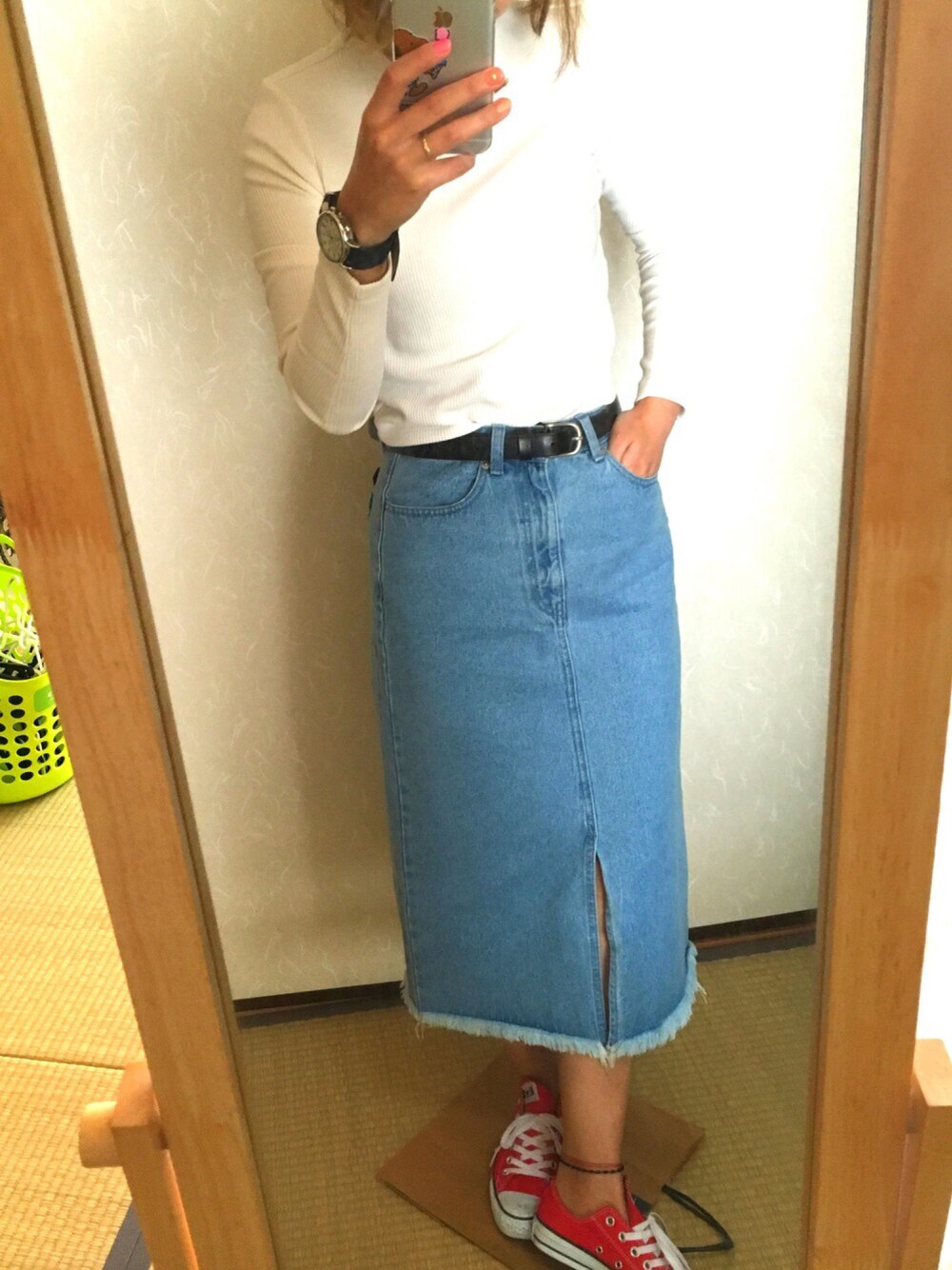 プチプラコーデ トップス、スカート両方とも1000円台 このGUのスカート色違いで買うか悩み中… 昨日から連投すいません…