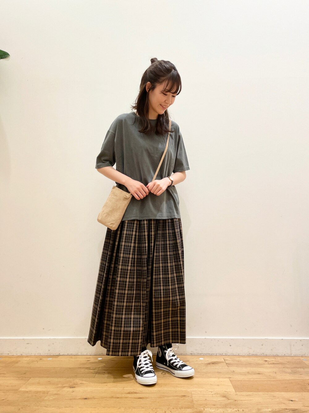 とことんゆるっとしたスタイリングに チェックのスカートでアクセントを入れてみました💫