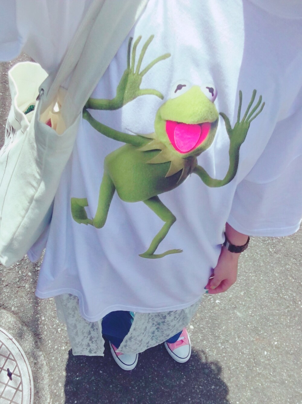 AyaのTシャツ/カットソー「Little sunny bite×muppets/リトルサニーバイト×マペッツ/Muppets KERMIT Big T-Shirts」を使ったコーディネート