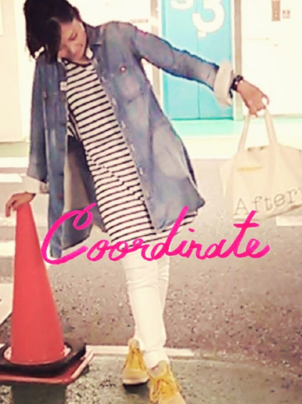 デニムワンピ*Lee パンツ*UNIQLO スニーカー*カンペール しましまワンピ*アーバンリサーチ バッグ*afternoon tea
