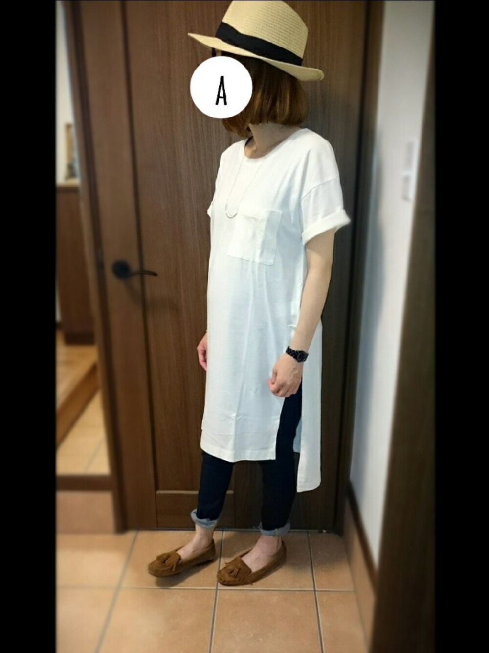 スリットロングT、妊婦との相性良しです🌼笑 デニムとモカシンを合わせてナチュラルに🌠