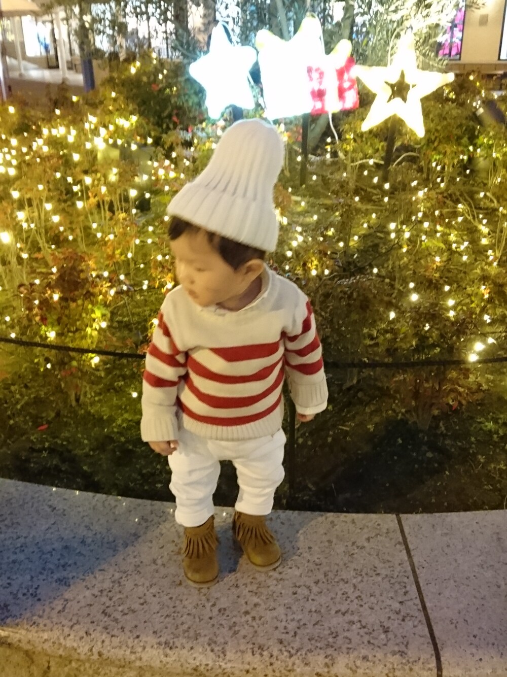 白×赤で少し早めのクリスマスコーデ \(^^)/ イルミネーションがすごく綺麗でした🎵
