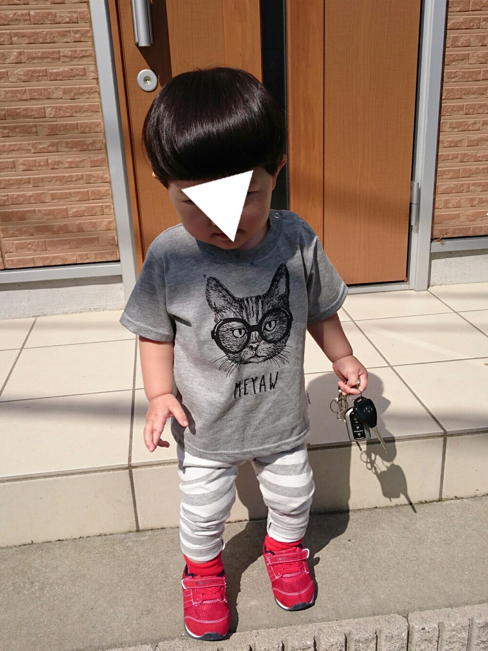 おはようございます☺ 久しぶりのUp 5月から保育園に入園したので、ただいま慣らし保育中(´・ω・`) 毎日毎日頑張って通ってます☆ なので、お洋服が保育園仕様!動きやすく、Tシャツとレギンス! このバースデイで購入したネコTシャツは、息子が自分で選びました☺ネコ好き男子なんです♪