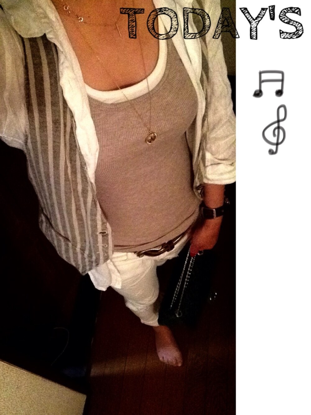 リネンシャツ:UNIQLO ベスト:ungrid タンクトップ:UNIQLO パンツ:AvanLily ベルト:ungrid クツ:ungrid カバン:シャネル 時計、ブレスレット:イルビゾンテ 綺麗めコーディネート❤