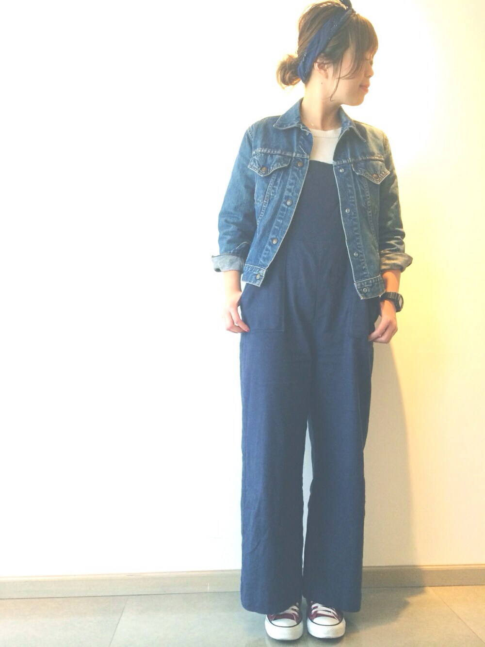 楽チンサロペット♡ 全身ブルー系なので足元はバーガンティのコンバースで♬