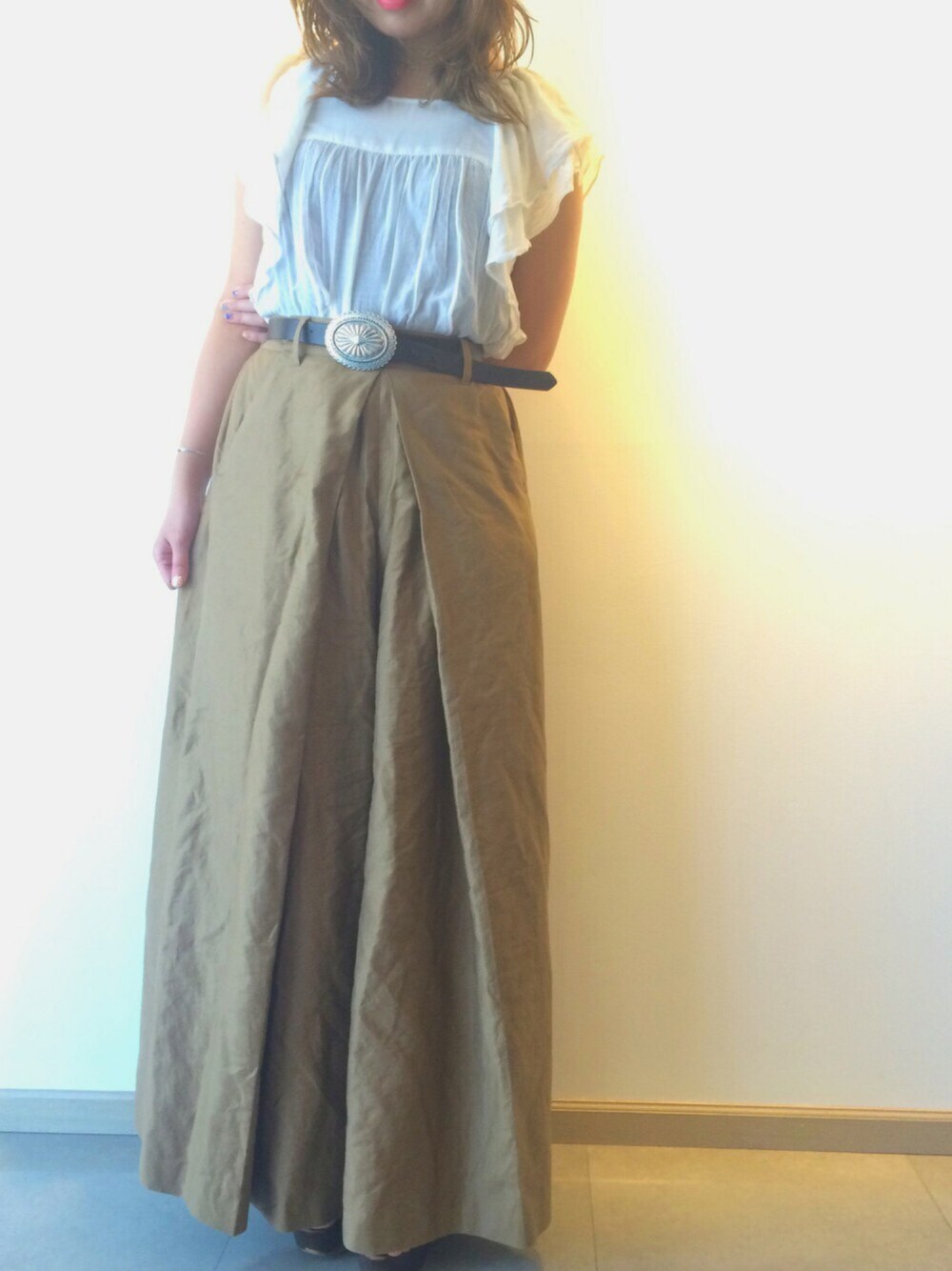 もっと暑くなる前にワイドパンツは沢山履きたい☀️ ベルト何にでも合うからヘビロテ中🐍