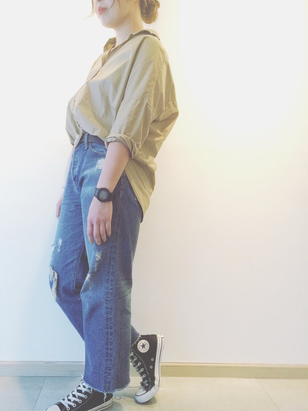 ayaのデニムパンツ「セミワイドダメージクロプトデニム」を使ったコーディネート