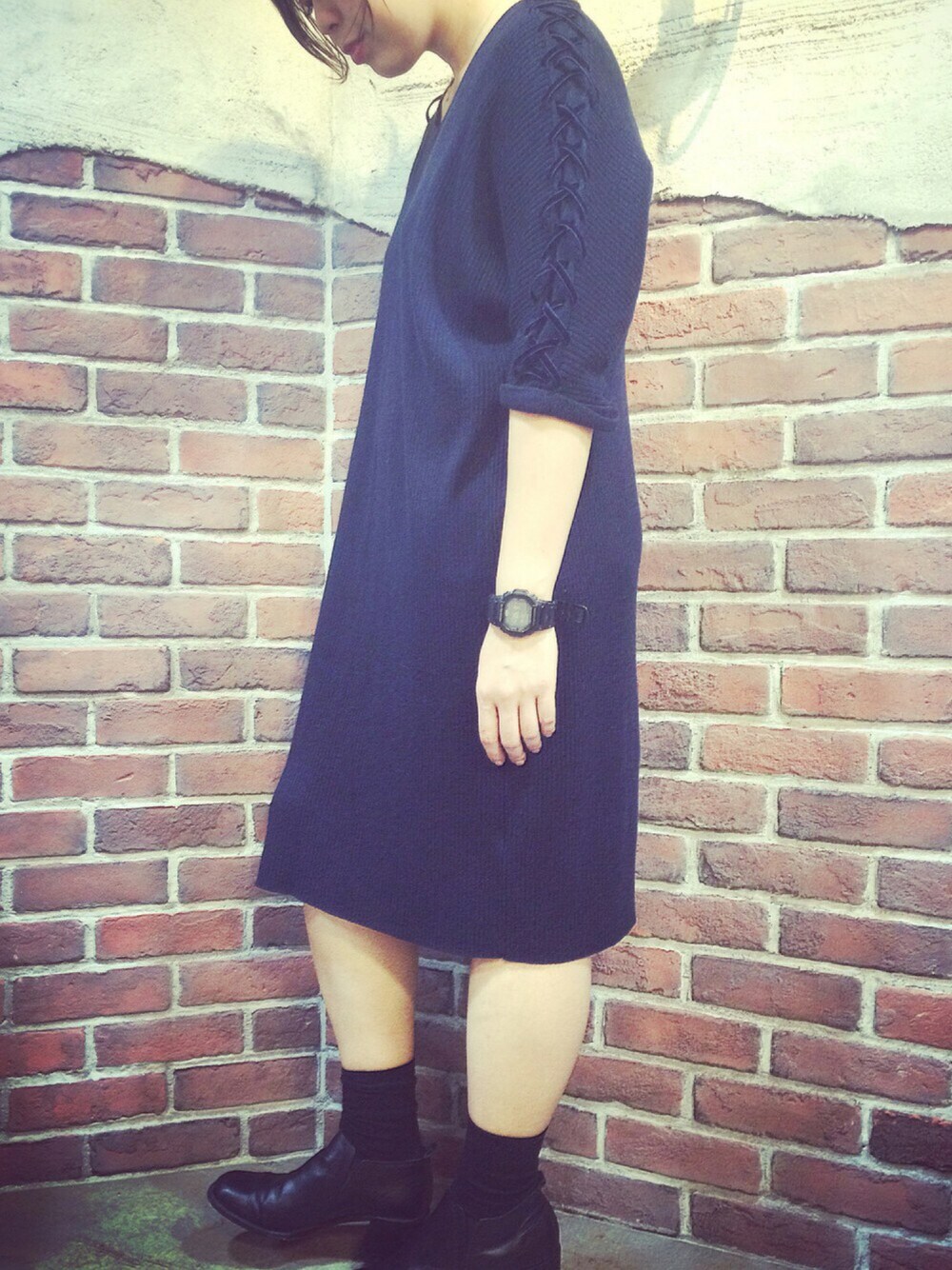 ayaのワンピース「レースアップスリーブVネックワンピース/AEMBC レースUP SL V/N OP◆」を使ったコーディネート