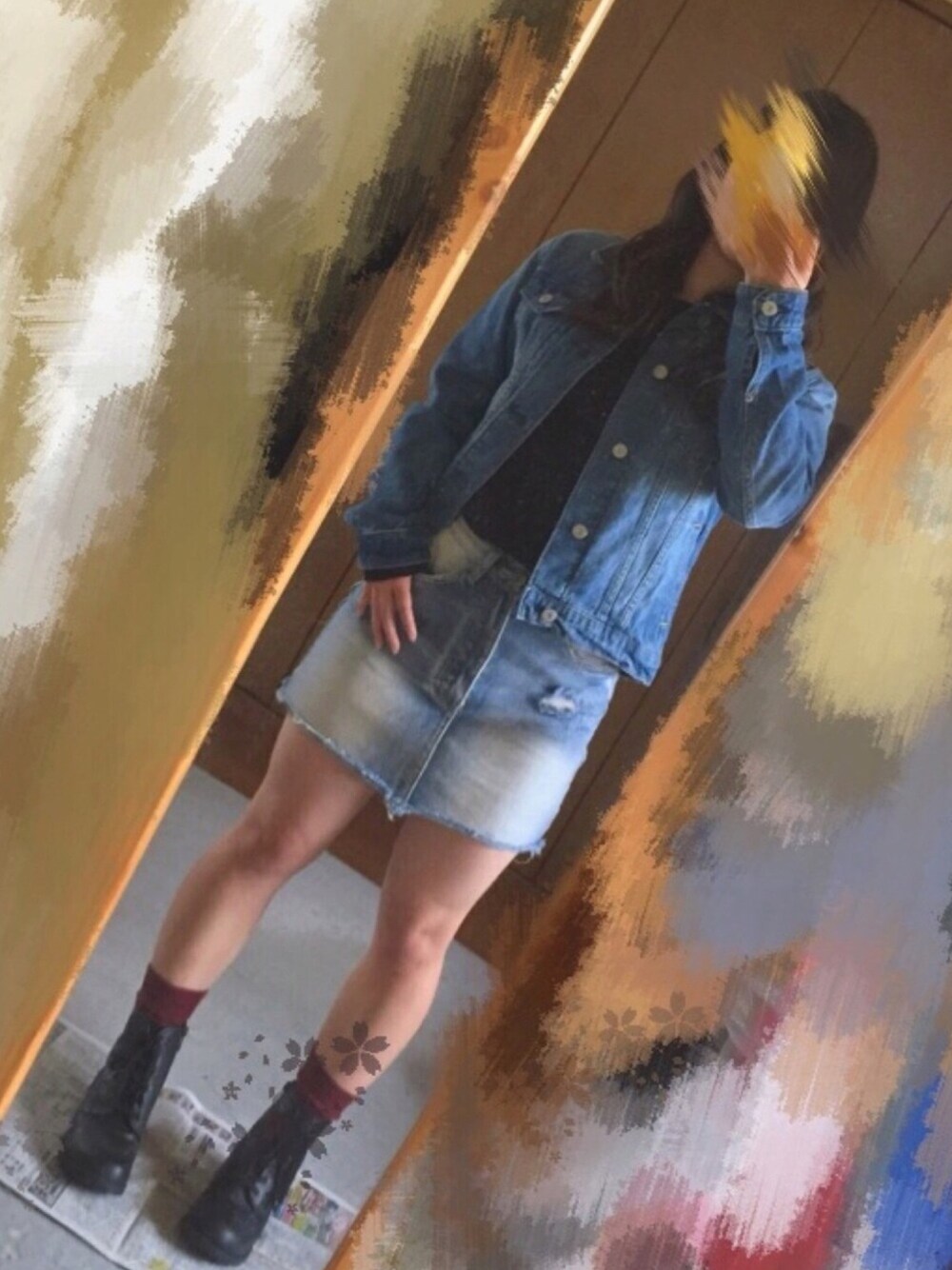古着のデニムスカートとGジャンでデニムアンドデニムコーデ🌈 曇りっていやだな〜☁️🙅🏻♀️