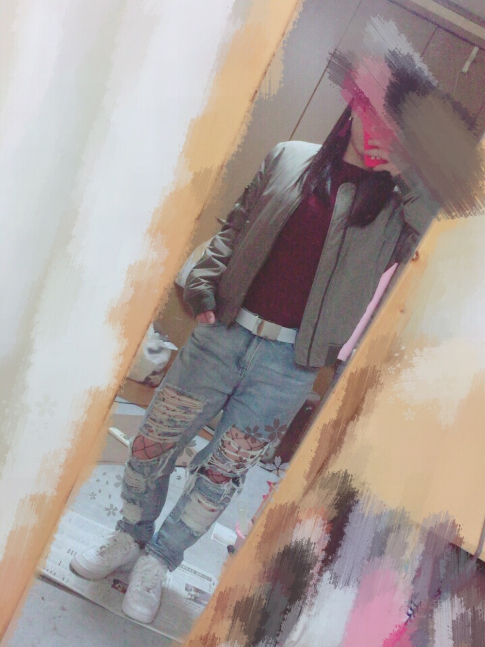 セーターとピアスは同じ色で統一👌🏻 冬でもair force良き♥
