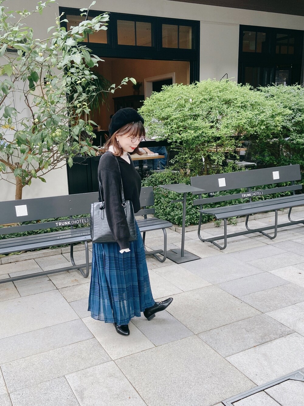 テーマは図書館コーデ🎶💕 アウターなしで出かけられる気温っていいよね😘✨
