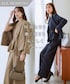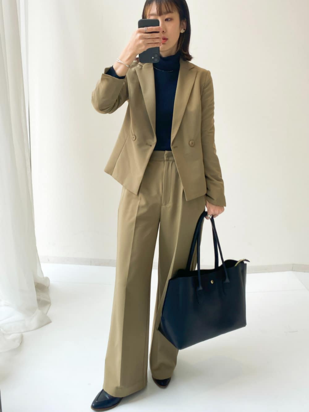 身長:157㎝ 骨格:ウェーブ 着用サイズ:S リアルバイした、リアルな通勤コーデ。絶妙な色味に惚れ込みました。スーツセット、はじめはMを購入しましたが全体的に大きかったのでSに交換。パンツの丈を1.5㎝程裾上げしてベストな丈感に!高めヒールを履く方は裾上げなしでも大丈夫と思います。3点セットで半袖ブラウスがついていますが、寒い時期はニットを合わせればOK♪