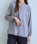 シンプルなスーツコーデですが、ボウタイブラウスをブルーにしてこなれ感を♪