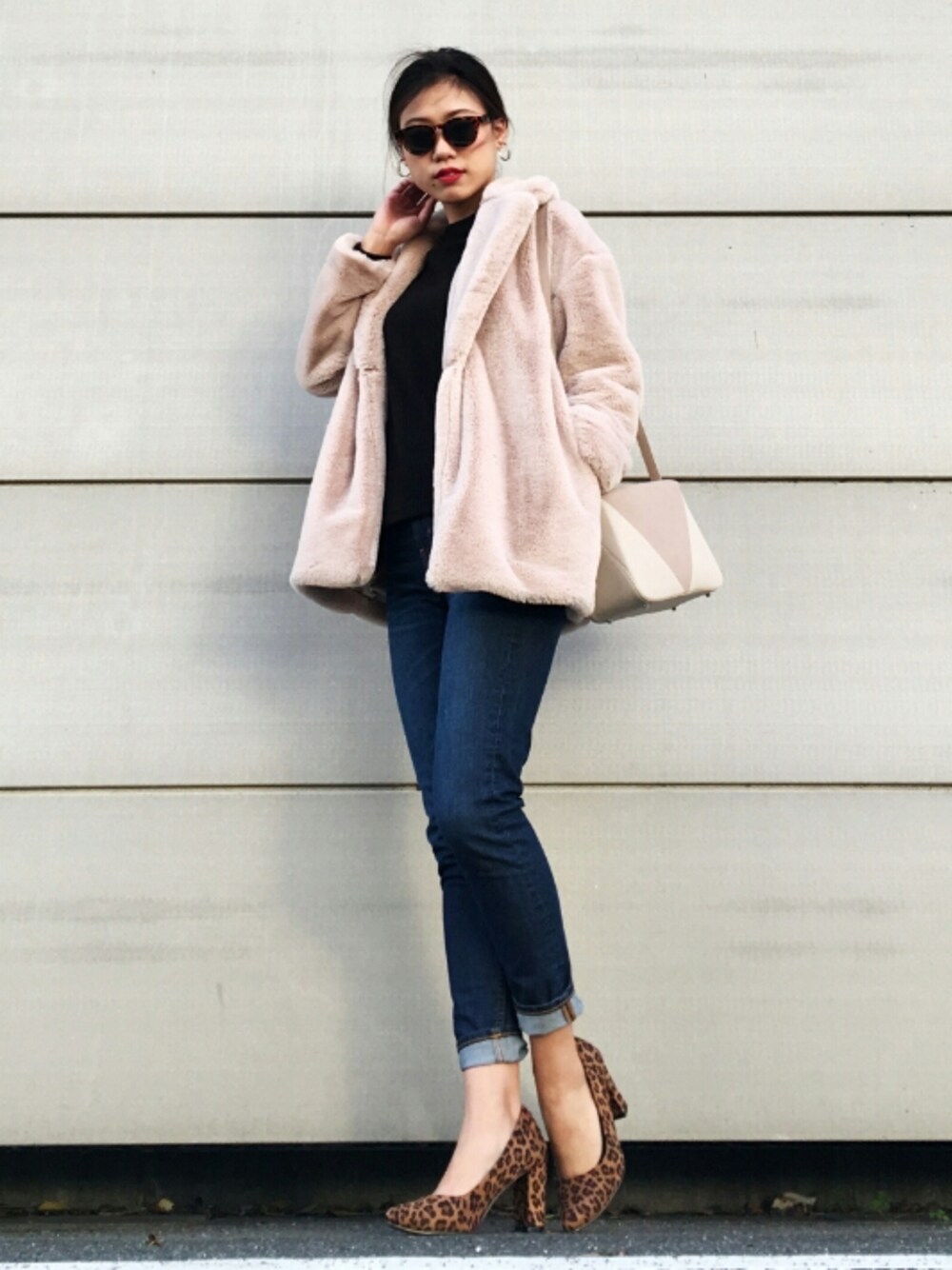 aya moriyasuのその他アウター「フェイクファージャケット」を使ったコーディネート