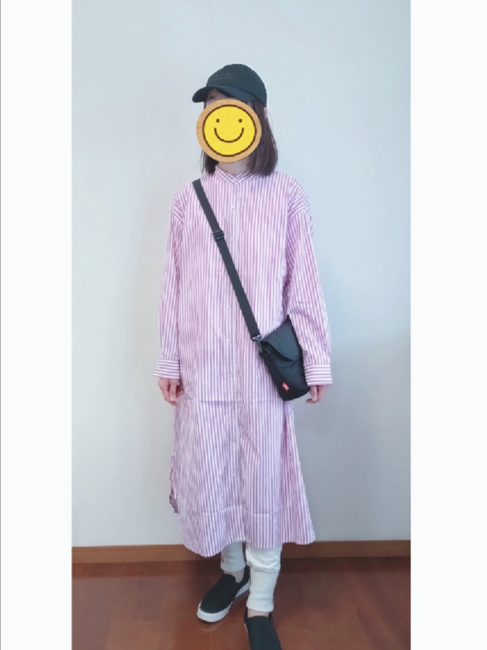 ☆AYA☆のシャツワンピース「カラーストライプバンドカラーシャツワンピース」を使ったコーディネート