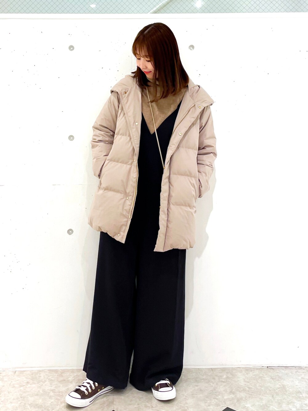 冬におすすめダウンコート。 ヒップが隠れる長さなので安心感があり暖かさも◎ 撥水加工が施されているので雨の日でもお使い頂けます♩