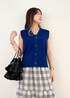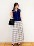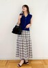 ベストのインナーはキャミで、大人ヘルシーな印象に◎ 小物はインナーのブラックと合わせて統一感を出しました。