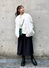 モノトーンでまとめたリラックスコーデ。 バッグはグリーンを選びアクセントをつけました◎