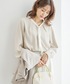 ベージュ系でまとめたキレイめコーデ。 ブラウスはタックインして脚長効果を狙いました◎