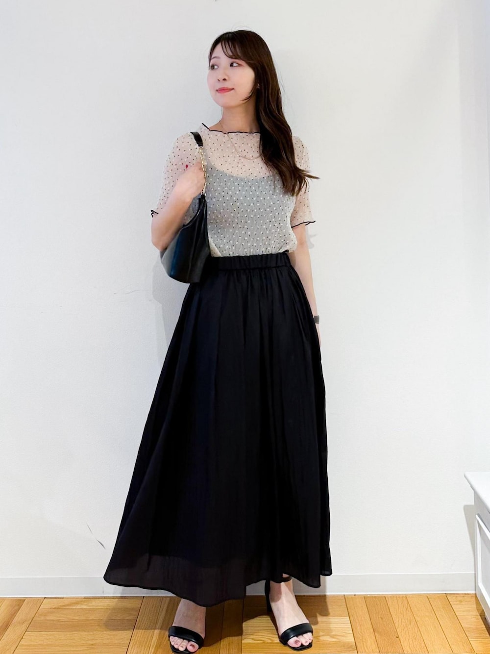 大人フェミニンなドット柄ブラウス。 ブラックのシンプルなスカートを合わせて大人クールに◎