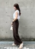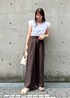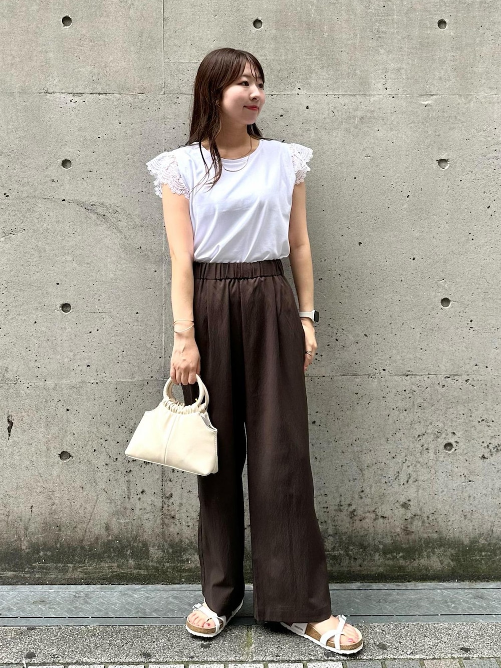 袖レースのトップスにワイドパンツを合わせたシンプルなスタイリング。 パンツはウエストゴムでとても楽な履き心地です◎