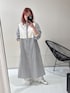 【トップス】 一枚で着映えするギンガムチェックのワンピースは、胸元の白い切り替えが顔まわりを明るく見せてくれます。 ゆったりとしたAラインシルエットですが、ハリのある素材感なので体のラインを拾わず、スッキリと着用できました。 袖口にゴムが入っているので、少し捲り上げてボリュームを出すと、手首の細さが強調されて抜け感が生まれます。 【ボトムス】 ワンピースの裾からレースパンツを覗かせて、足元に軽やかさと華やかさをプラスしました。 ワイドシルエットのパンツを重ねることで、全体の重心が下がりすぎず、今っぽいバランスに仕上がります。 白のレースがクッションの役割を果たし、モノトーンコーデをぐっと春らしい印象に変えてくれます。 【シューズ・バッグ・小物】 足元はシルバーのバレエシューズを合わせ、程よい光沢感で全体を引き締めました。✨ 甘めのアイテム同士の組み合わせなので、メタリックカラーの小物を入れると大人っぽくまとまります。 【スタッフのつぶやき】 ・ボリュームのあるワンピースも、レースの透け感とシルバーの足元で、軽やかにスタイルアップできました。春にぴったりのコーデです