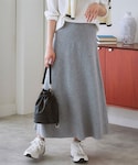 【トップス】 表面感のあるジャガード素材のトップスは、一枚で華やかさと上品さを演出してくれます。 肉感を拾いにくい適度な厚みがあり、体のラインを拾わずスッキリとしたシルエットを作ってくれました。 袖口のリブを少し上げて手首を見せることで、ボリューム袖の可愛さを引き立てつつ、抜け感を出しています。 【ボトムス】 程よく広がるAラインのニットフレアスカートは、気になる下半身を自然にカバーしてくれる頼れる一枚です。 あえて同系色のグレーで繋げることで、Iラインを強調し、全体をすらっとした印象にまとめました。 腰にネイビーのシャツを巻くことで、視線を高い位置に集め、腰まわりのカバーと脚長効果を同時に叶えています。 【シューズ・バッグ・小物】 ・足元は黒のスクエアトゥブーツでキリッと引き締め、モードなエッセンスをプラスしました。👢 ・重めのカラーでまとめる時は、足元にヒールのあるものを持ってくると、全体のバランスがグッと整います。 【スタッフのつぶやき】 ・のっぺりしがちなワントーンも、異素材の組み合わせとシャツのアクセントで、メリハリのある着こなしを楽しめました。