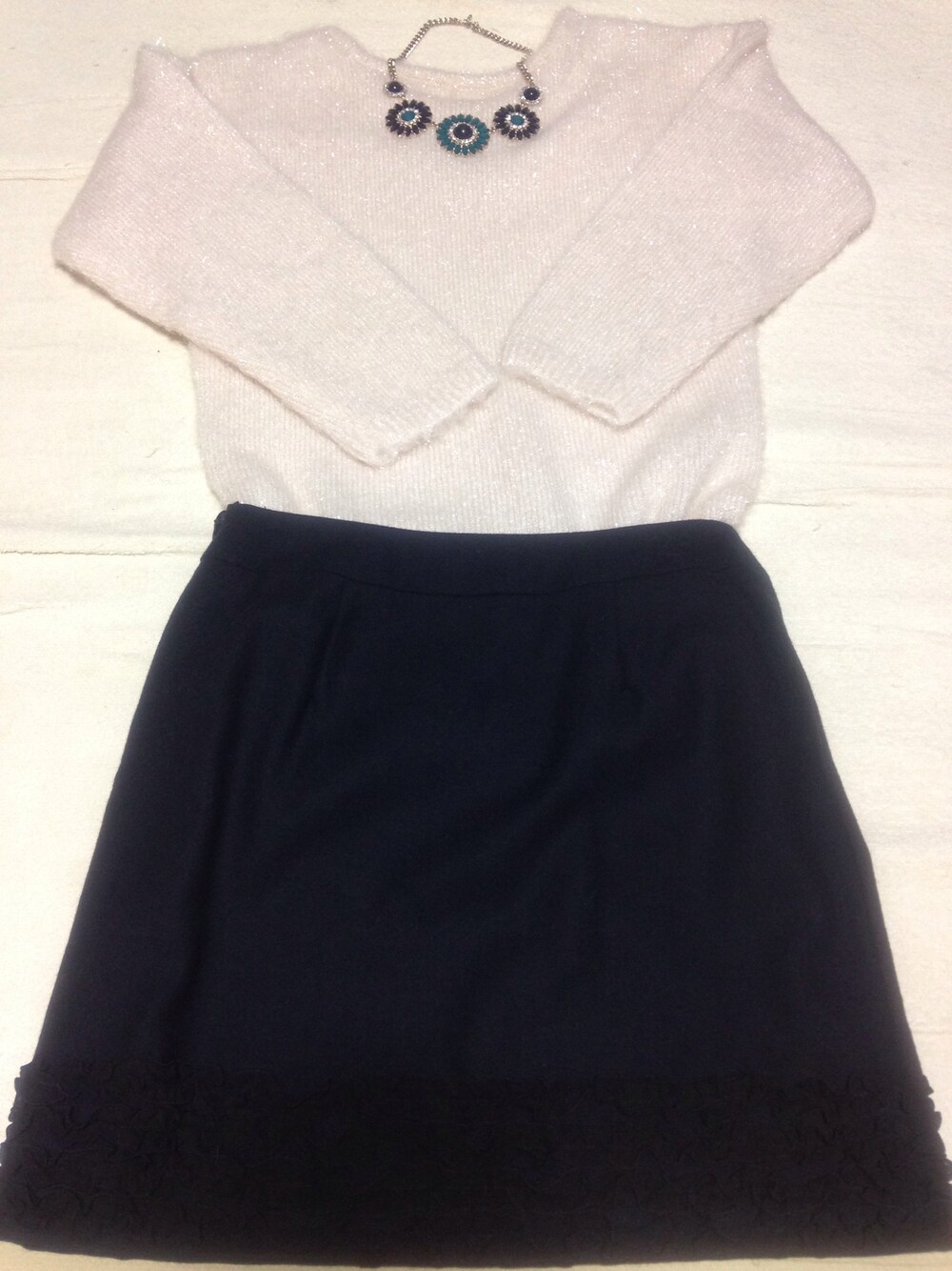 モノトーンコーデにしてみました(((o(*゚▽゚*)o))) 写真では分かり辛いですが、スカートの裾部分にはフリルが付いていて可愛いんです〜(*^_^*) シンプルな服を着たい時に着ようかなー!