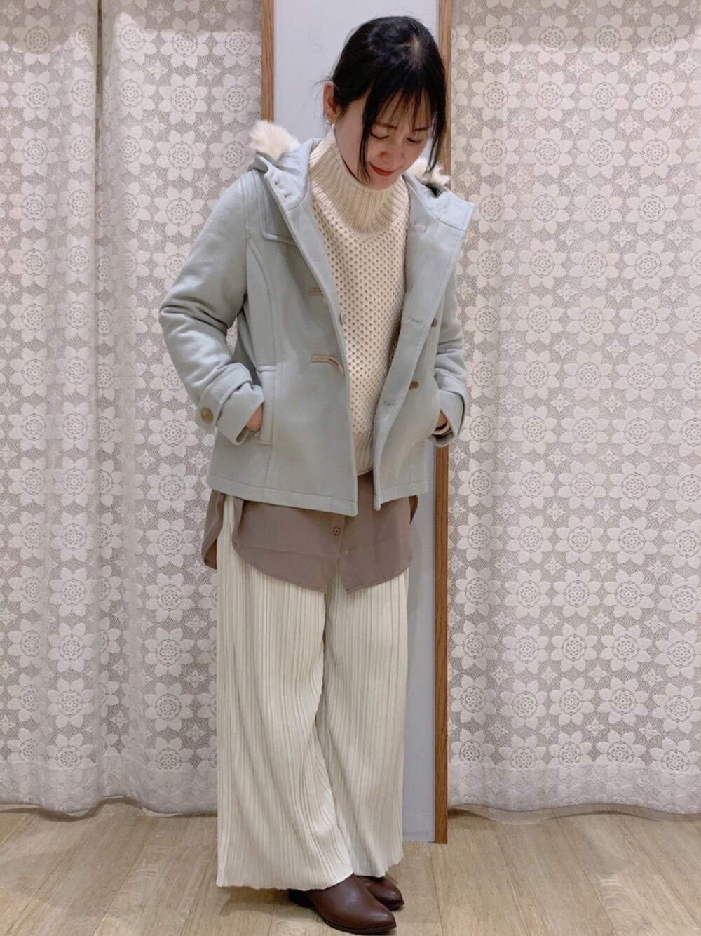 Shinommyのダッフルコート「ショートダッフルコート *」を使ったコーディネート