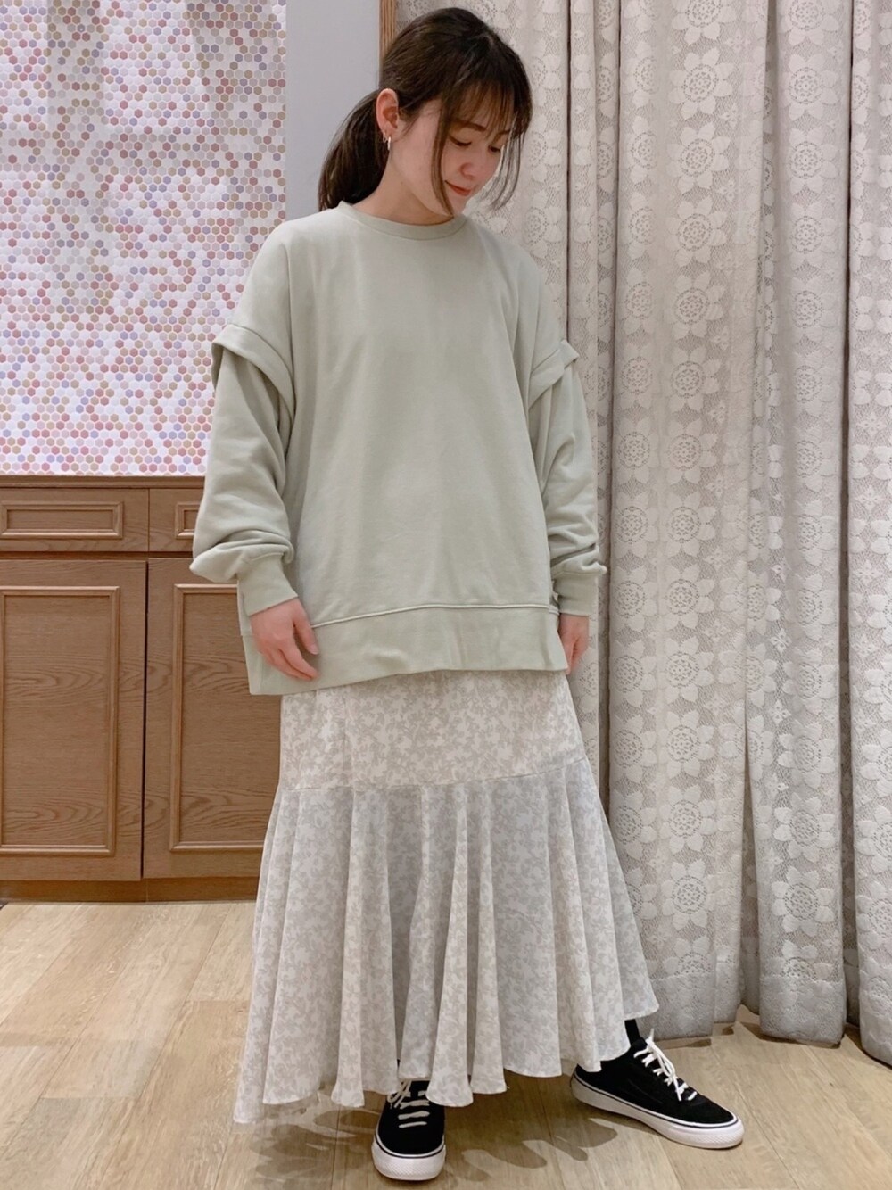 切り替えスカートコーデ🌷 花柄の切り替えフレアスカートは甘めアイテムですが、トレーナーとスニーカーであえてカジュアルにしました👟 淡めカラーが可愛いコーデです🌼 いつもイイネ、お気に入り、フォローありがとうございます😊 shopインスタもやっているので是非フォローお願いします🧡 👉🏻@earth_takanohara