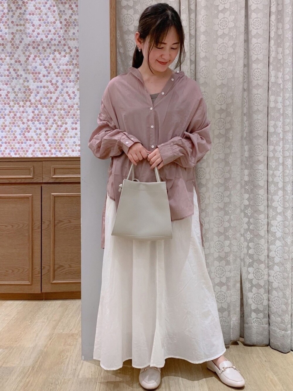 フレアスカートコーデ② コットン素材のシャツチュニックと合わせて涼しげな印象のコーデ🐚 ホワイト×ピンクで女性らしいカラーにしました🌷 デートにもおすすめなコーデです🥰 いつもイイネ、お気に入り、フォローありがとうございます😊 shopインスタもやっているので是非フォローお願いします🧡 👉🏻@earth_takanohara