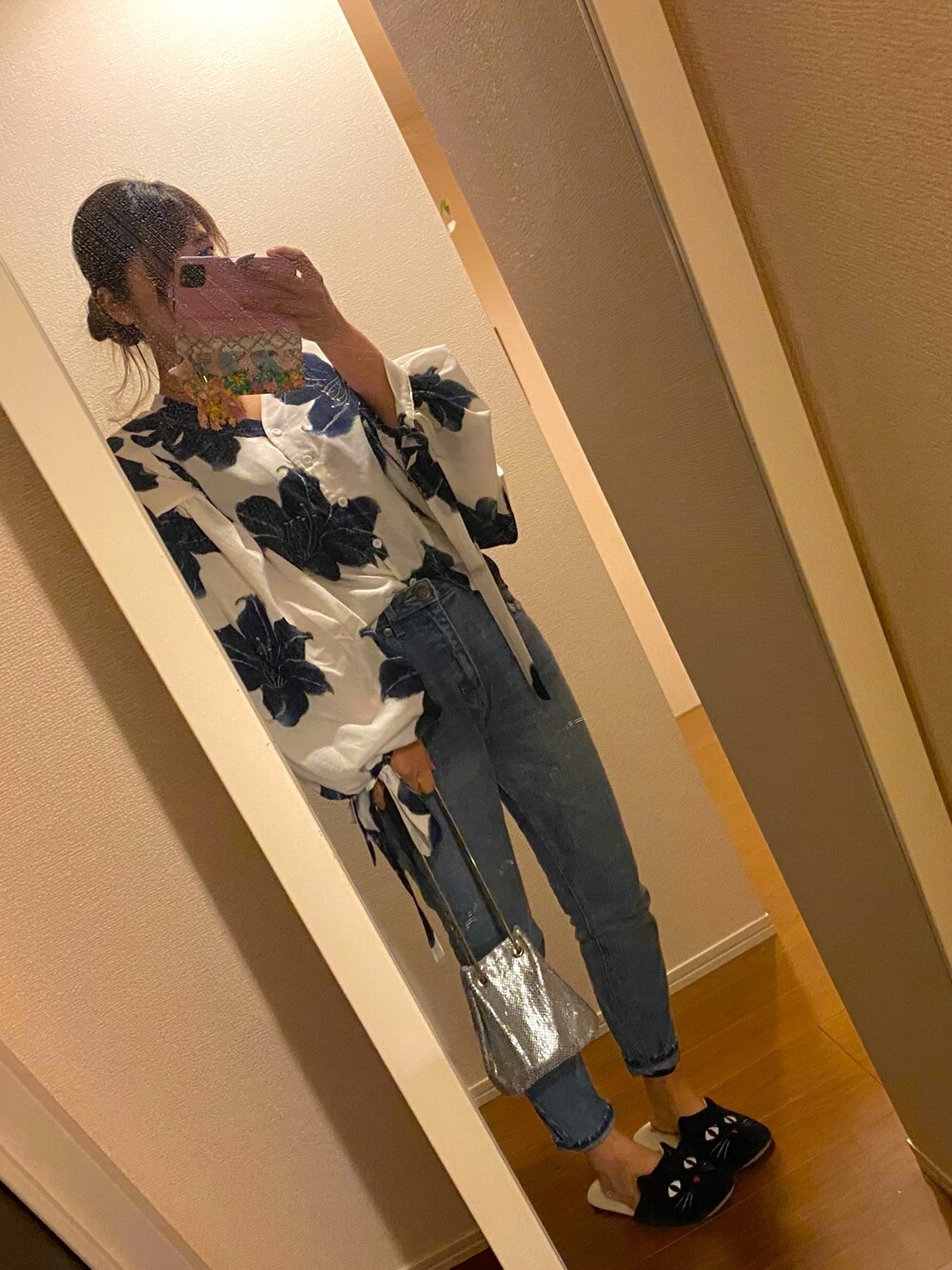 購入は3年前だけどめちゃめちゃ気に入ってる花柄ブラウス🌸 BASEの韓国服のところで買いました。