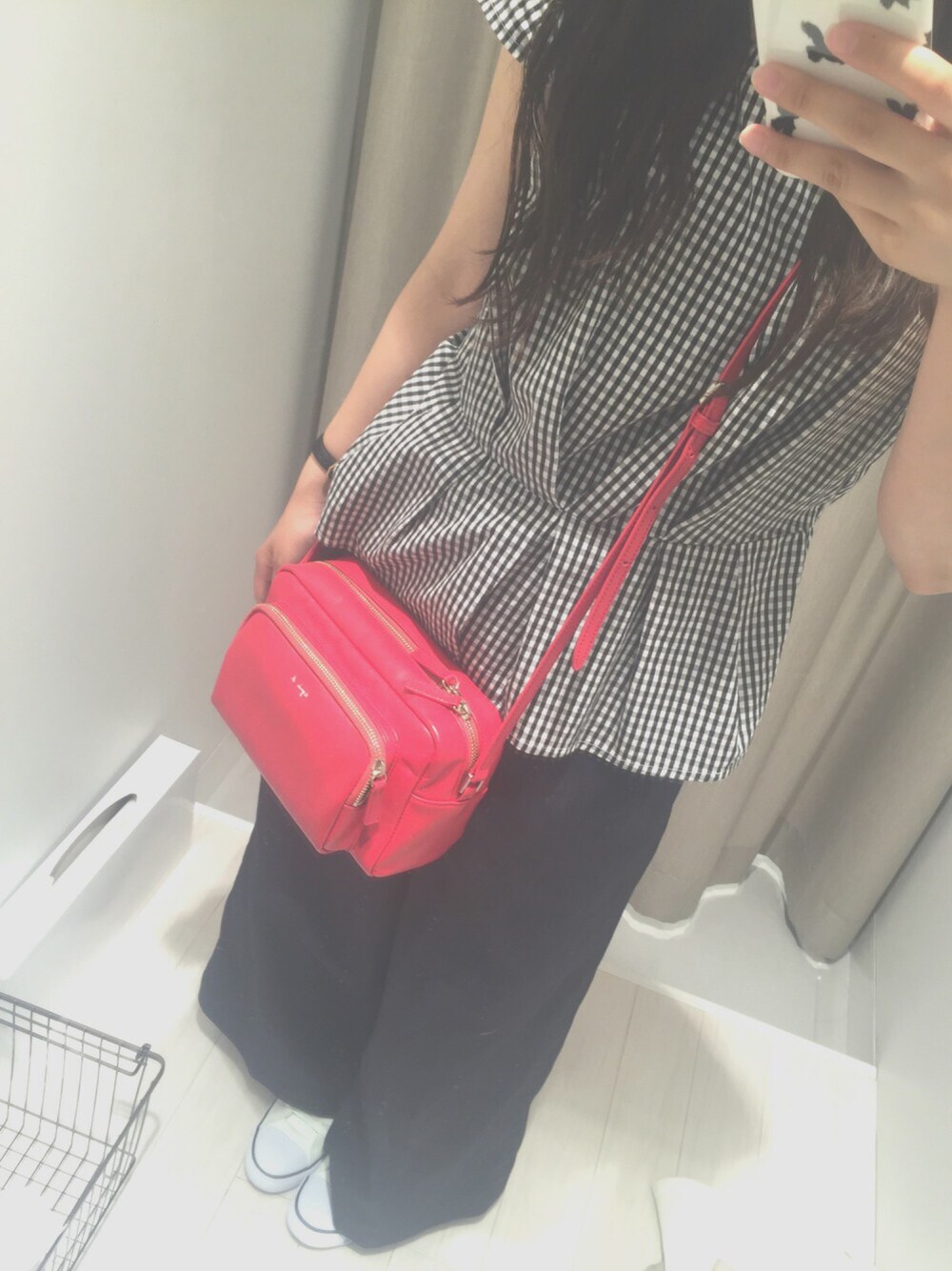 ギンガムチェック×ワイドパンツ×赤バッグ したかったcode🙋💓 このデニムワイドパンツはユニクロで 990円でゲット!ラッキーでした!! 形綺麗なんやけどうまく撮れない〜 欲しかった白のスニーカーは ポロラルフローレンで。 数回しか履いてないけど ちょっとずつ汚れてきてるのがつらいー😭