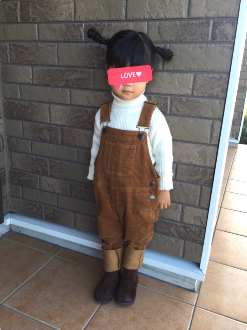 節分やから鬼さんヘアー👹 このタートルにサロペお気に入り💕 子供のサロペ姿かわいい〜😍