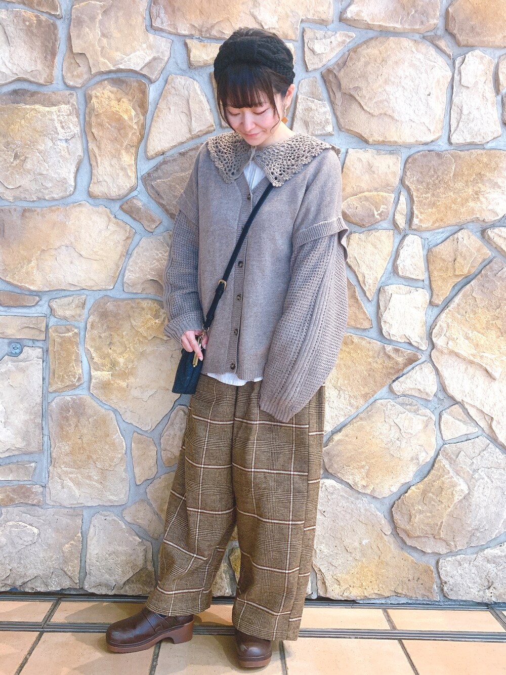 ワントーンゆるっとコーデ🧸 パンツは裏地がついてるのであったかです🧶 何にでも合わせられるつけ襟も万能過ぎて…3色揃えたくなっちゃいます(*´`)
