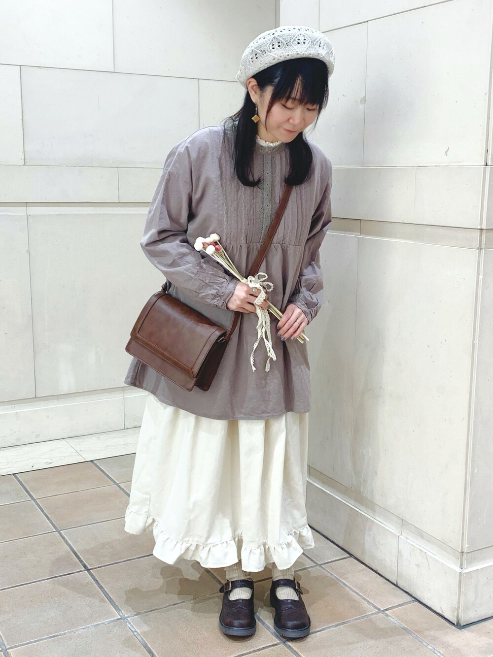 Ayaのハンチング/ベレー帽「ダイヤ柄編みベレー帽」を使ったコーディネート