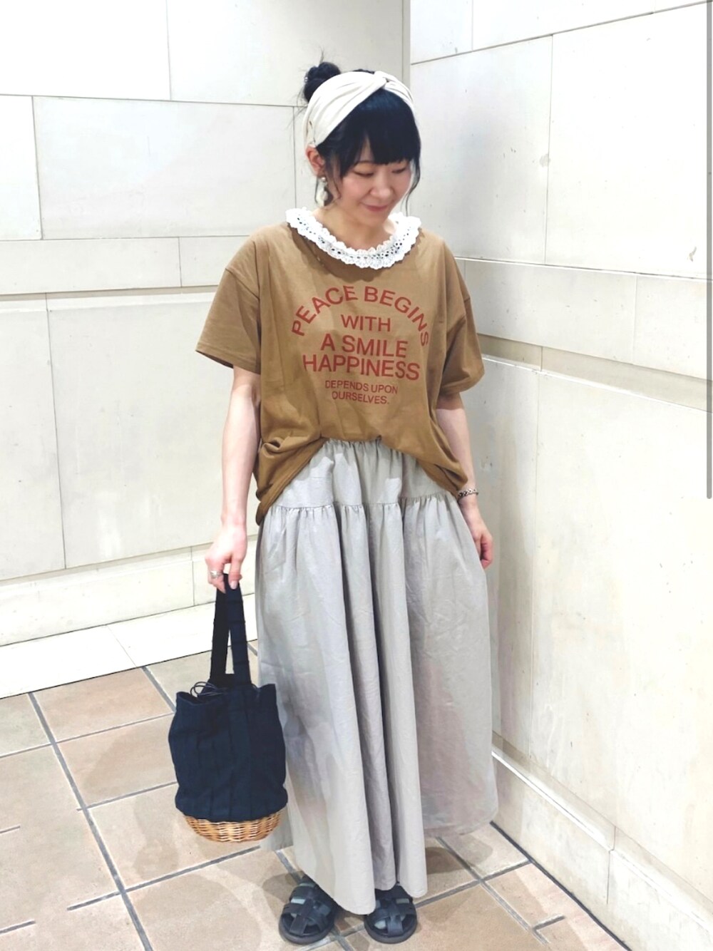 AyaのTシャツ/カットソー「後ろ編み上げロゴプリントTシャツ」を使ったコーディネート