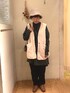 ストライプ柄がお洒落な丈の長いシャツチュニック💚🍏 実はポケットもついてます…っ! コーデュロイパンツとボアベストであったかコーデ"(∩>ω<∩)"