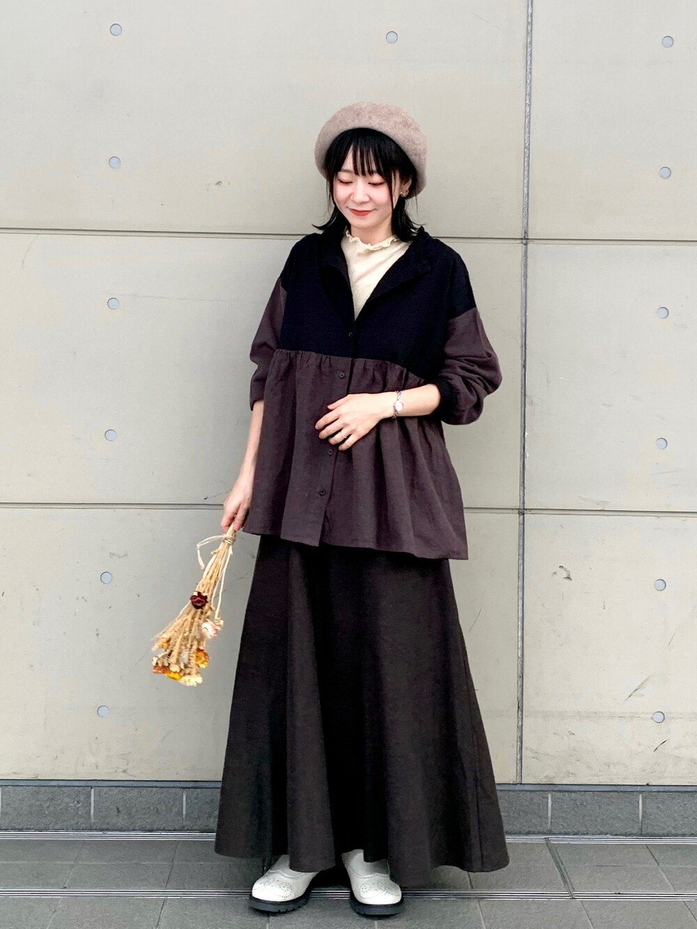 ペプラムでガーリーなブラウスも、ワントーンで大人なコーデ⏱🐈⬛